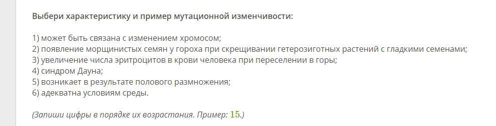 Выбери характеристику и пример мутационной изменчивости: