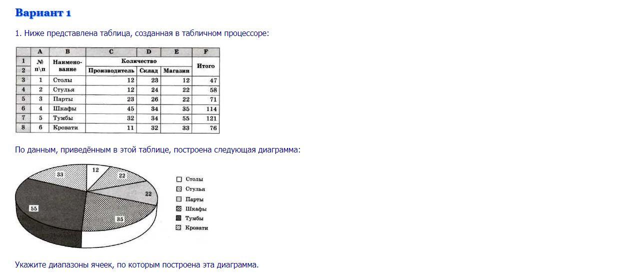 1. Ниже представлена таблица, созданная в табличном процессоре: