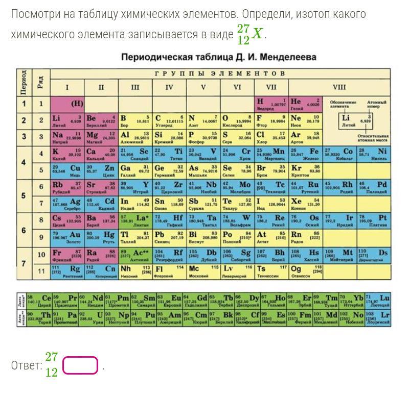 Таблица Менделеева на картинке