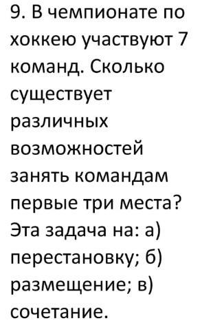 про команды и места это размещение 7*6*5- таким будет ответ, б)