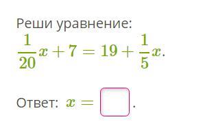 Пошаговое объяснение:1/20х+7=19+1/5х