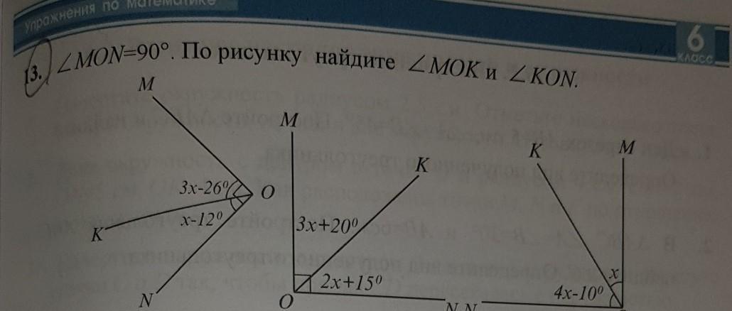 ∠MOK = 3x - 26° = 3 · 32° - 26° = 70°