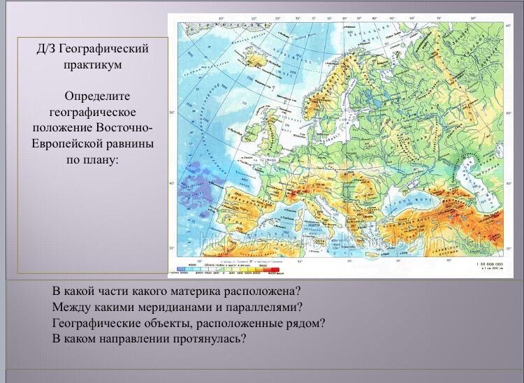 4. Восточно-Европейская равнина протянулась в направлении с севера на юг 2750 км,а с запада на восток 2500 км.