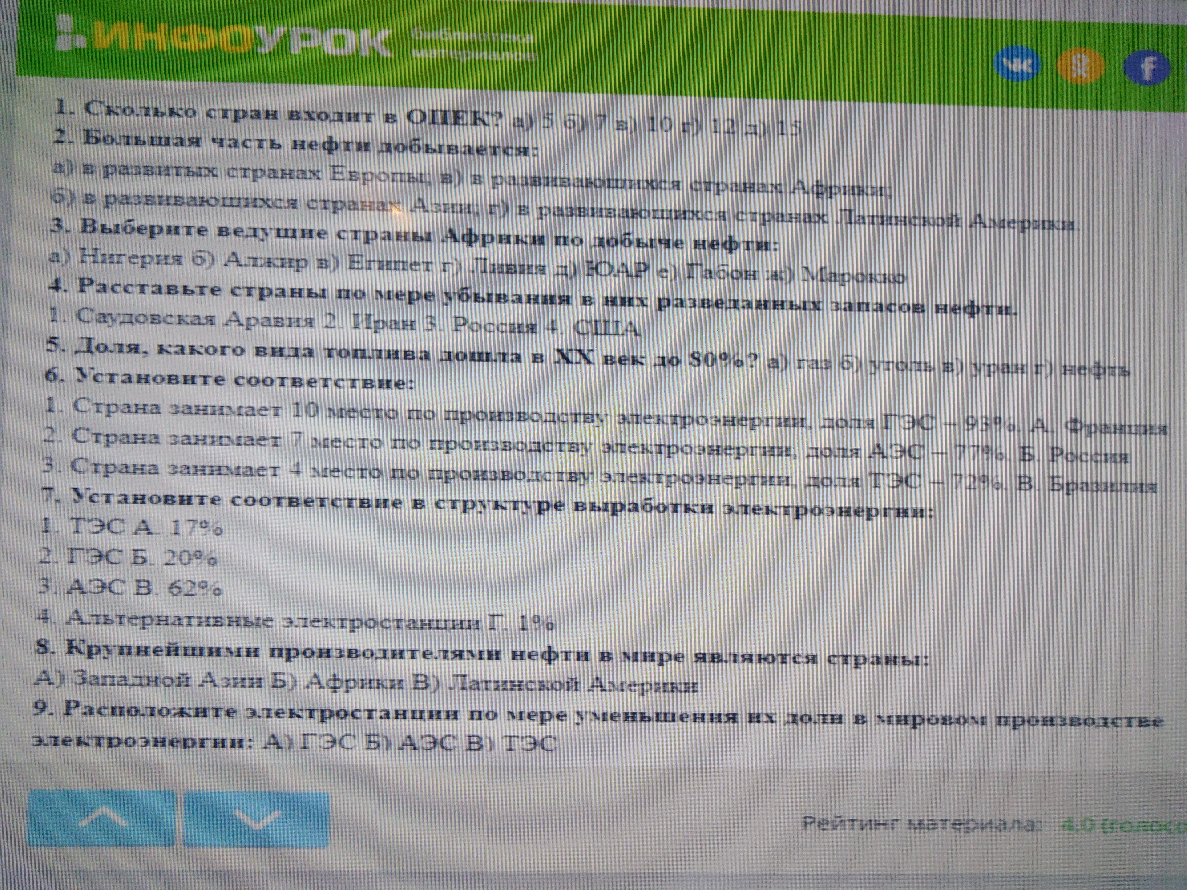 4) 1.Саудовская Аравия 2.Иран 3.Россия 4.США