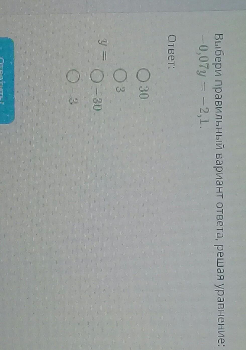 -0,07y÷(-0,07)=-2,1÷(-0,07)