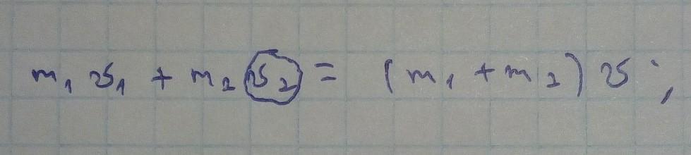 m1v1+m2v2=(m1+v2)v