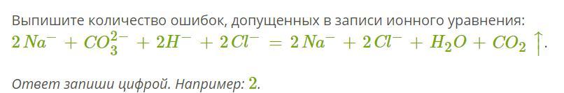 Выпишите количество ошибок, допущенных в записи ионного уравнения: