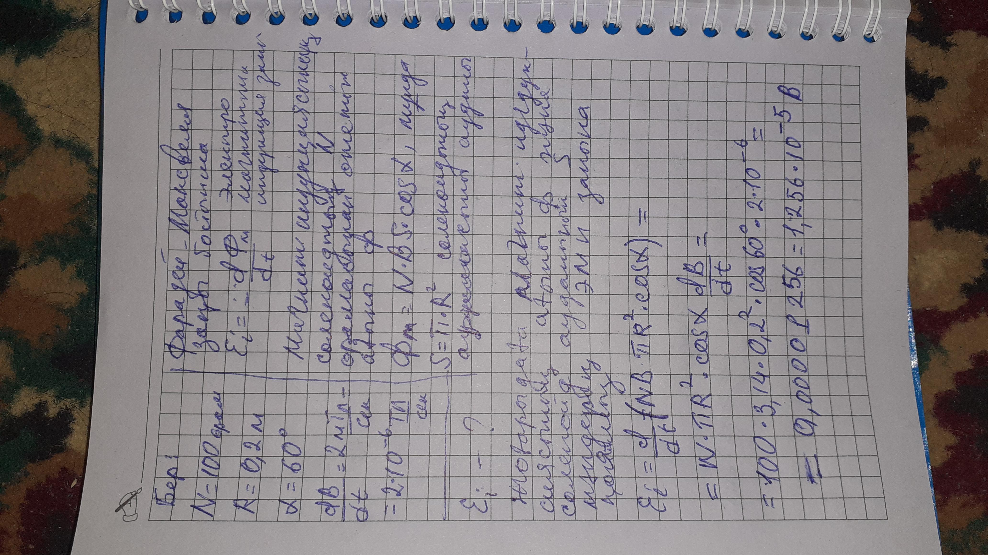 Біртекті магнит өрісінде орналасқан 100 орам сымнан тұратын соленоидтың индукциясы 2мТл/с жылдамдықпен өзгереді. Радиусы 0,2 м осы соленоидтың осі магнит өрісі индукциясының векторымен 600 бұрыш жасағанда, пайда болған индукцияның ЭҚК-і