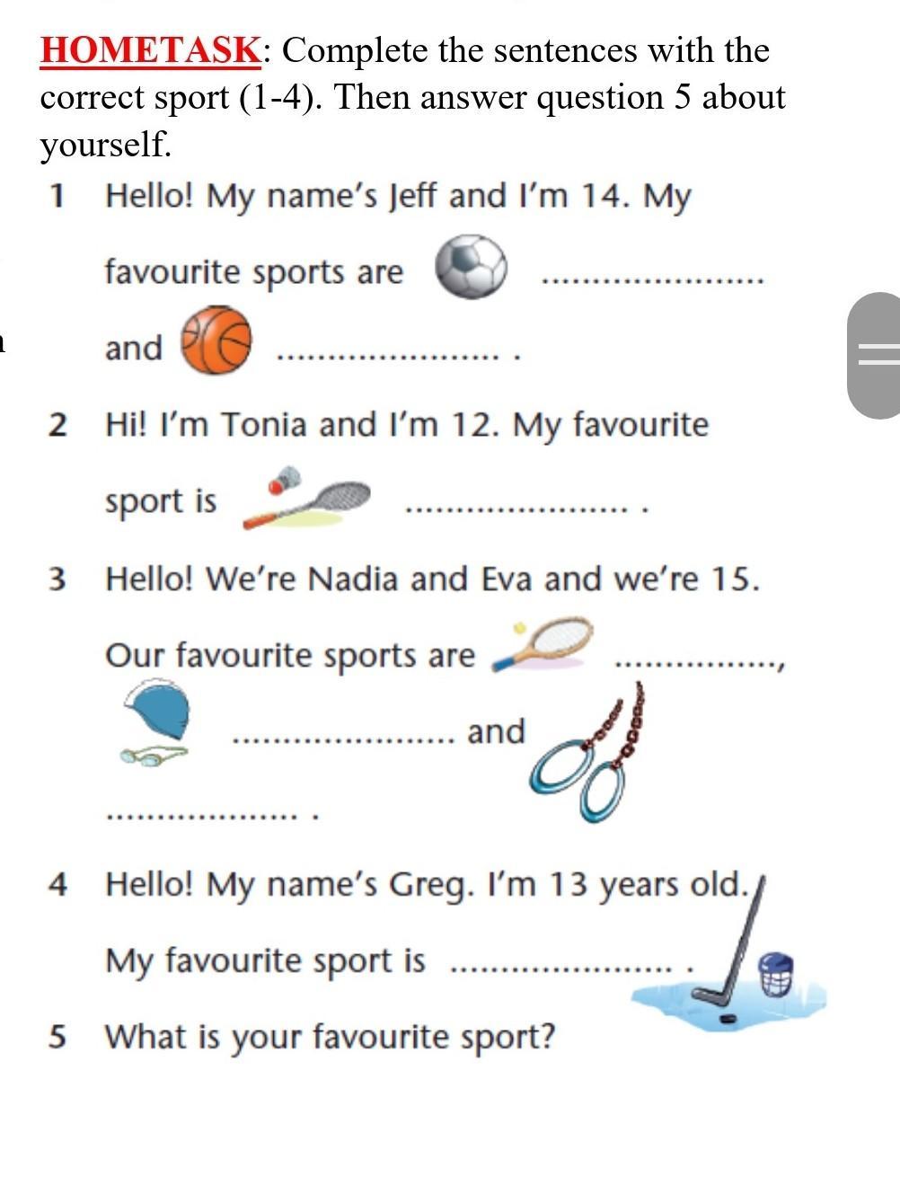 Ответ:1.Football, basketball