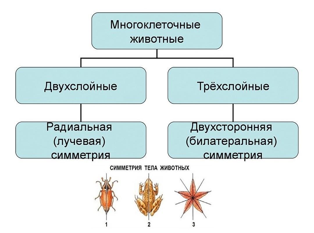 Ответ: Двухслойные животные – кишечнополотные, так как состоят из двух слоёв эктодермы и эктодермы, разделяет которые мезоглея. Остальные животные состоят из трех слоёв – эктодермы, мезодермы и энтодермы.