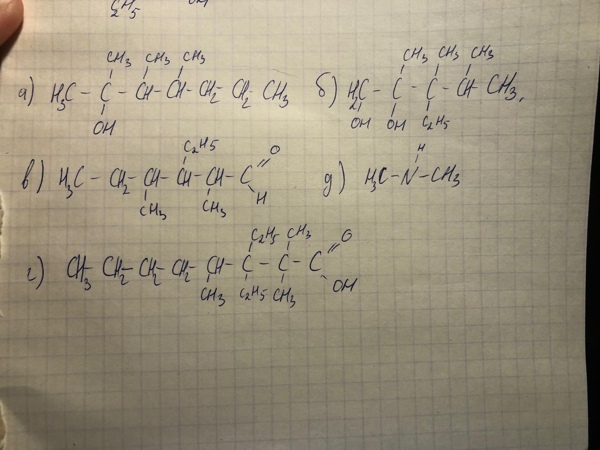 в) 2,4-диметил-3-этилгесаналь г) 2,2,4-триметил-3,3-диэтилоктановая кислота