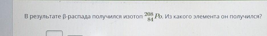 В результате В-распада получился изотоп 208(сверху)84(снизу) Ро. Из какого элемента он получился?