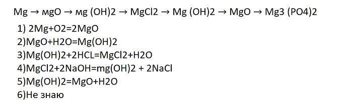 Мg → мgO → мg (OН)2 → МgCl2 → Мg (OH)2 → МgO → Мg3 (РО4)2