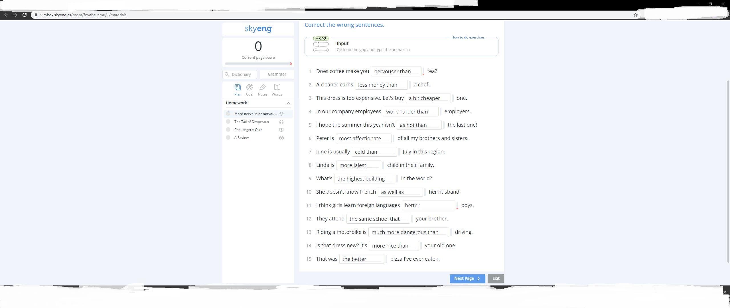 1 more nervous than 5 isn’t as hot as 6 the most affectionate 7 colder than 8 the latest 11 better than 12 the same school as 14 nicer than 15 the best