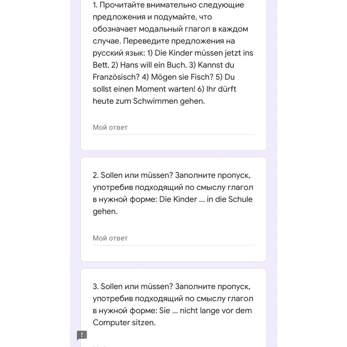 4) надо исправить: ОНИ любят рыбу?/ 3. sollen, но м.б. и "soll" - ед.число!