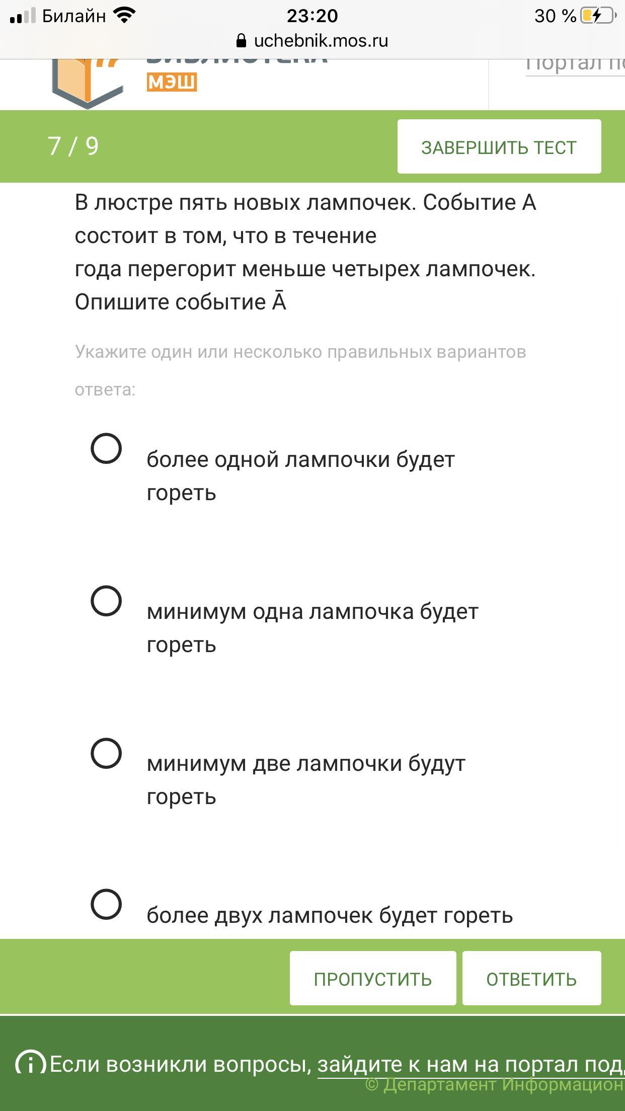 Будут гореть ровно 3 лампочки или будет гореть минимум 1 лампочка