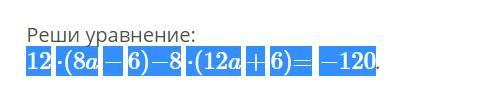 12⋅(8a−6)−8⋅(12a+6)=−120 решите уравнение пожалуйста пошагово я вас прошу никак не могу решить
