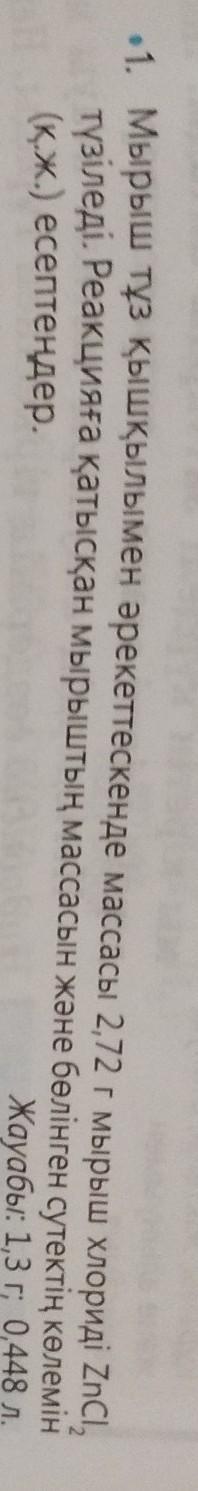 Мырыш тұз қышқылымен әрекеттескенде массасы 272 г мырыш хлориді ZnCl,