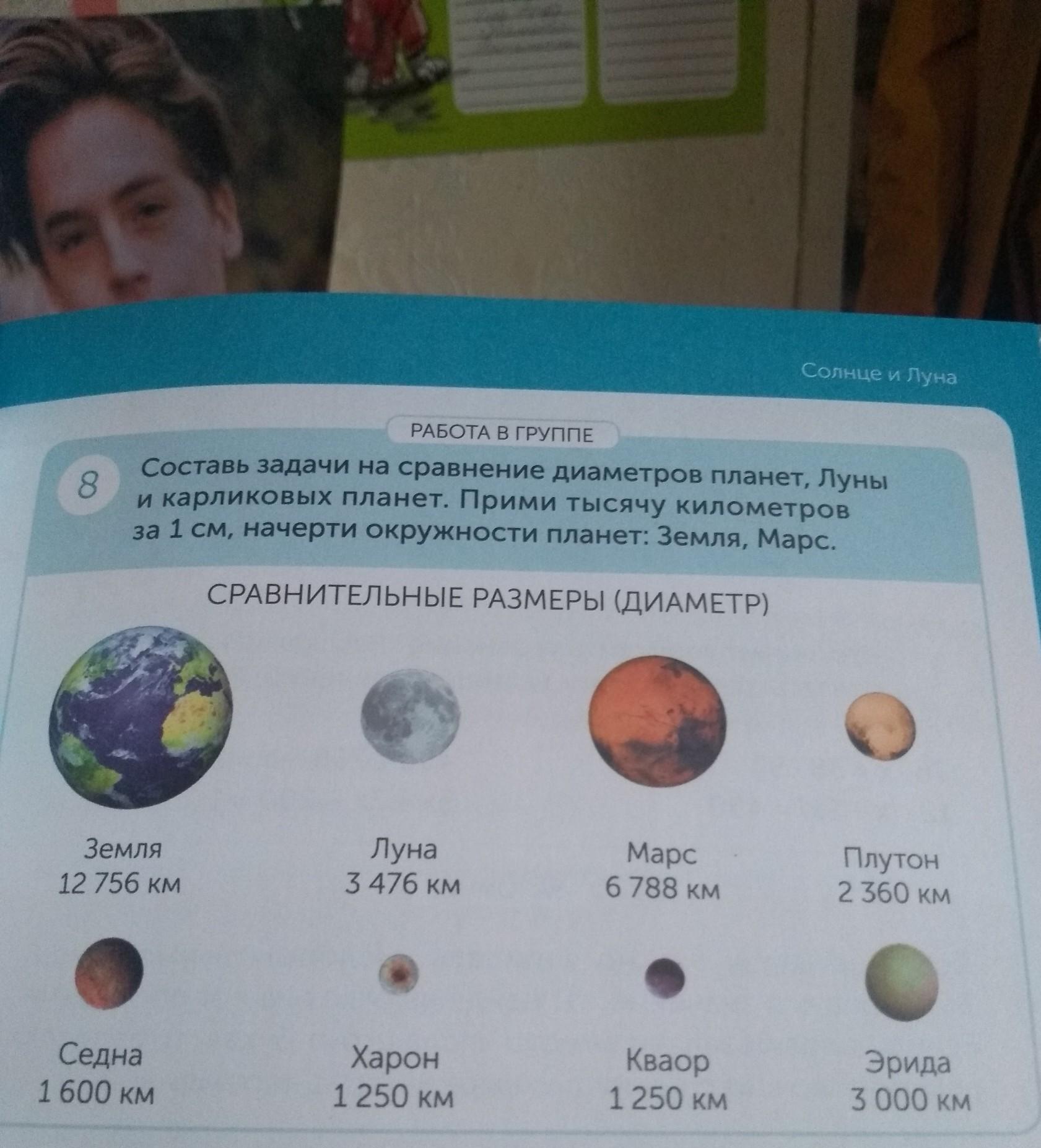Пошаговое объяснение:по математике номер 8 округляем диаметры до единиц тысяч, например Земля 13000км=13 см, Марс7000км=7см и чертим.