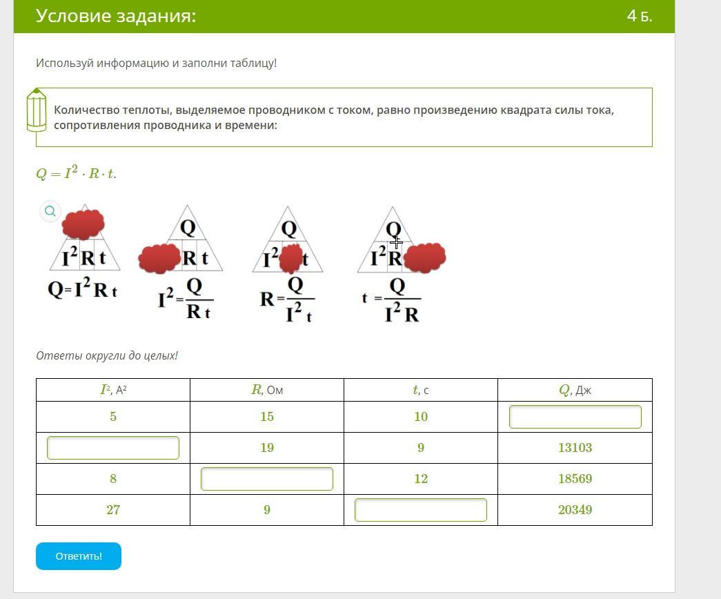 Количество теплоты, выделяемое проводником с током, равно произведению квадрата силы тока, сопротивления проводника и времени:
