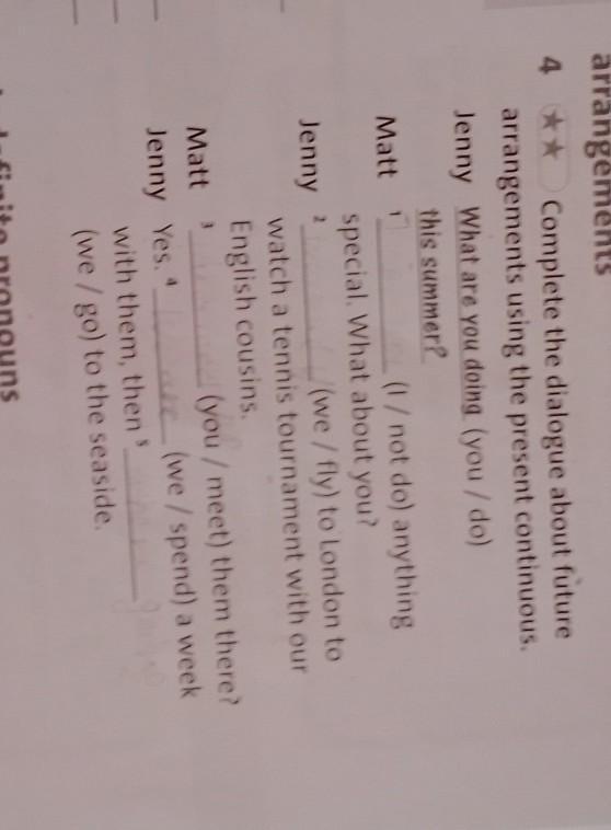 4 * Complete the dialogue about future arrangements using the present continuous.