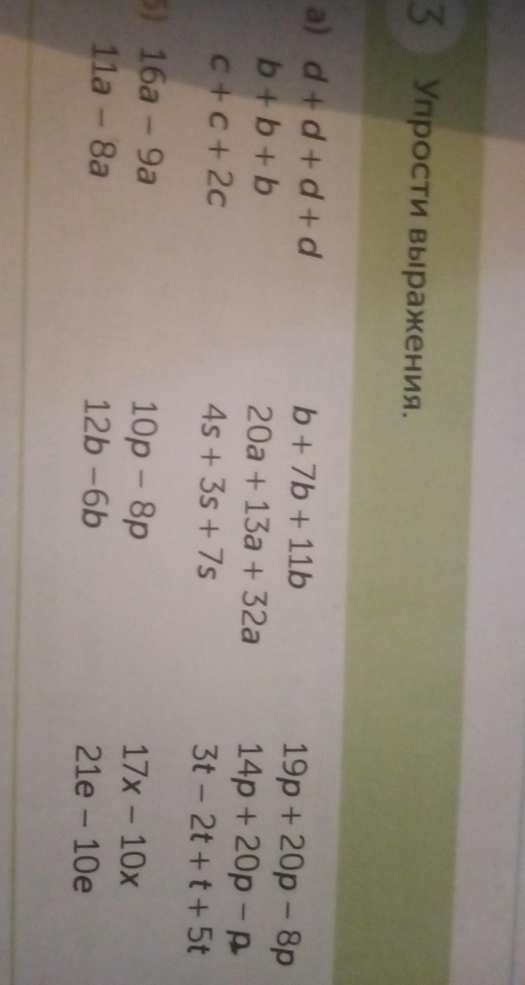 b+b+b=3b 20a+13a+32a=65a 14p+20p-p=33p