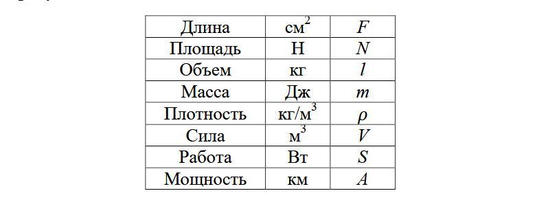 Задача 2.Установите соответствие между величинами,их единицами измеренияи буквенными обозначениями (запишите в строку).