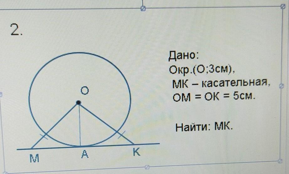 Радиус, проведенный в точку касания, перпендикулярен касательной, OAM=90