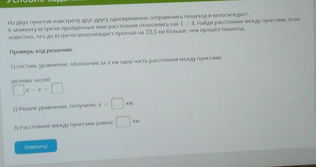 2)Решивуравнение, получили: х=7,5 км.