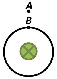На рисунке изображен прямой проводник с током. Определи направление линий магнитного поля в точках A и B.