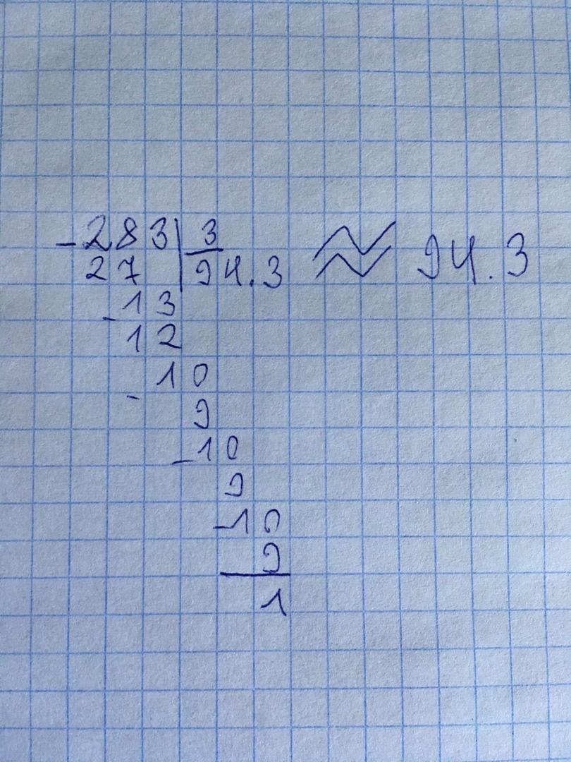 Ответ : 283 : 3 = 94 (ост.1)