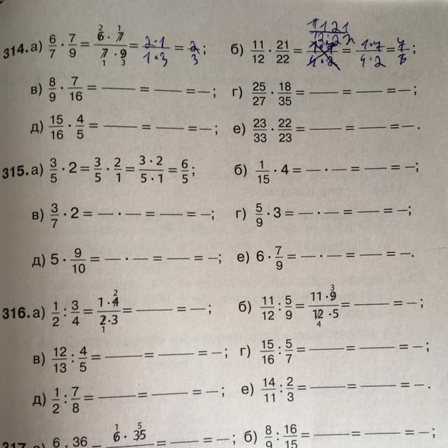 математика 5 класс тетрадь 2 часть упр 314 дроби 6_7*7_9=