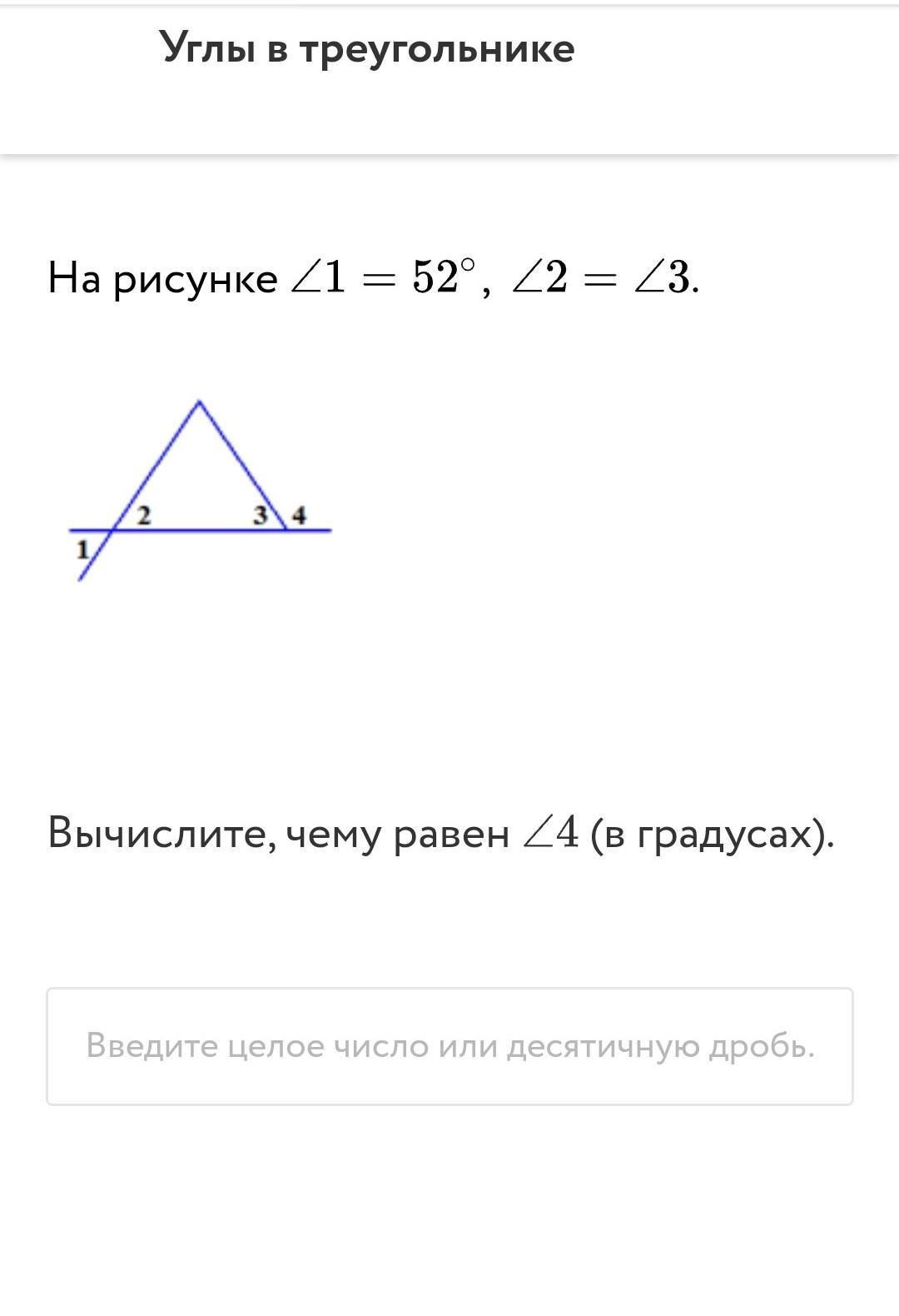 1 и два вертикальные след. 2=52,след 3=52,тк они равны. 4=180-52=128 тк смежные