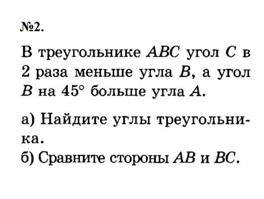 угол В= 45°*2=90° угол А=90°-45°=45° б)угол А=углу В,значит,треугольник АВС-равнобедренный, а следовательно, стороны АВ и ВС равны
