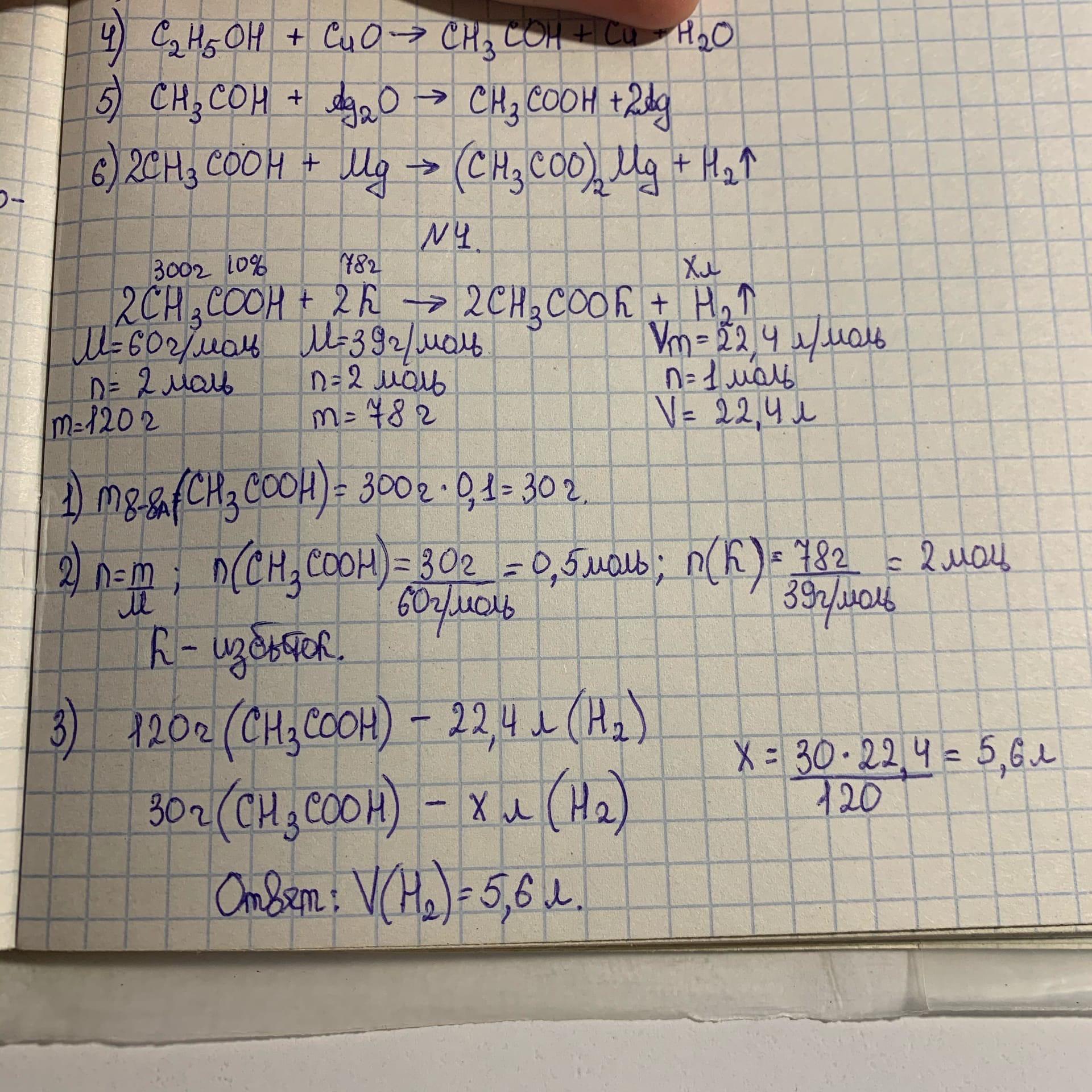взаимодействии 300г 10%-го раствора уксусной кислоты с 78 г металлического калия.