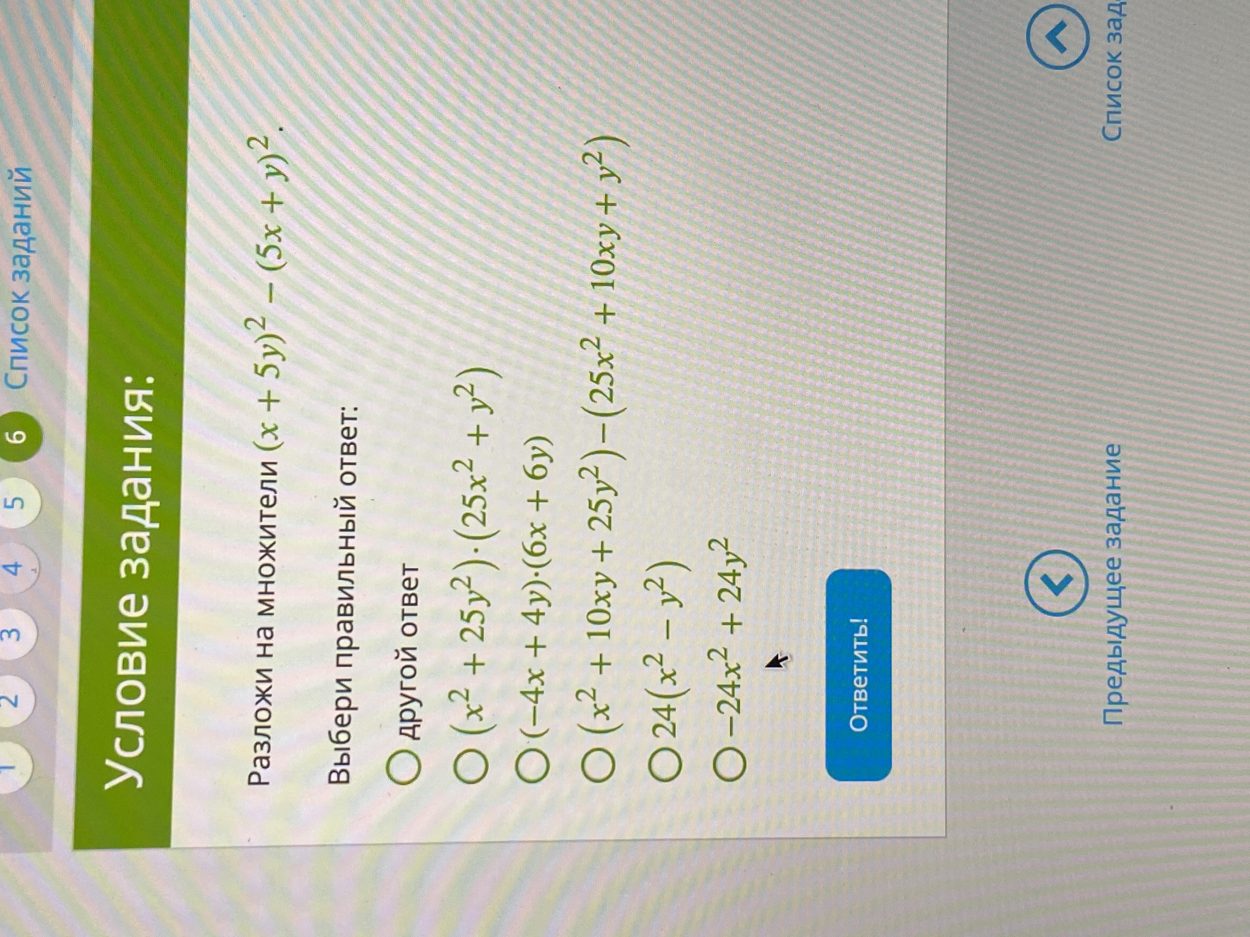 Ответ: третий сверху (x^2 +10xy....