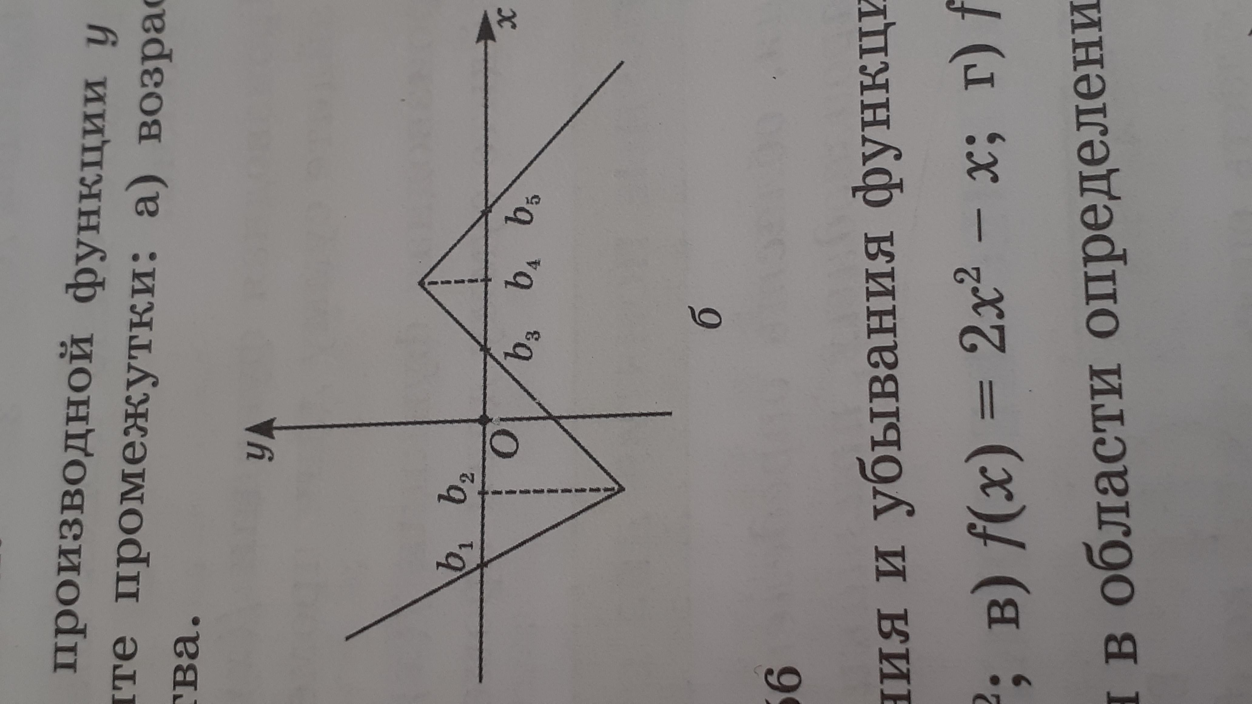 на рисунке 56, б изображен график функции y = f (x), с помощью графика определите промежутки: а) возрастания, б) убывания, с)знакопостоянства