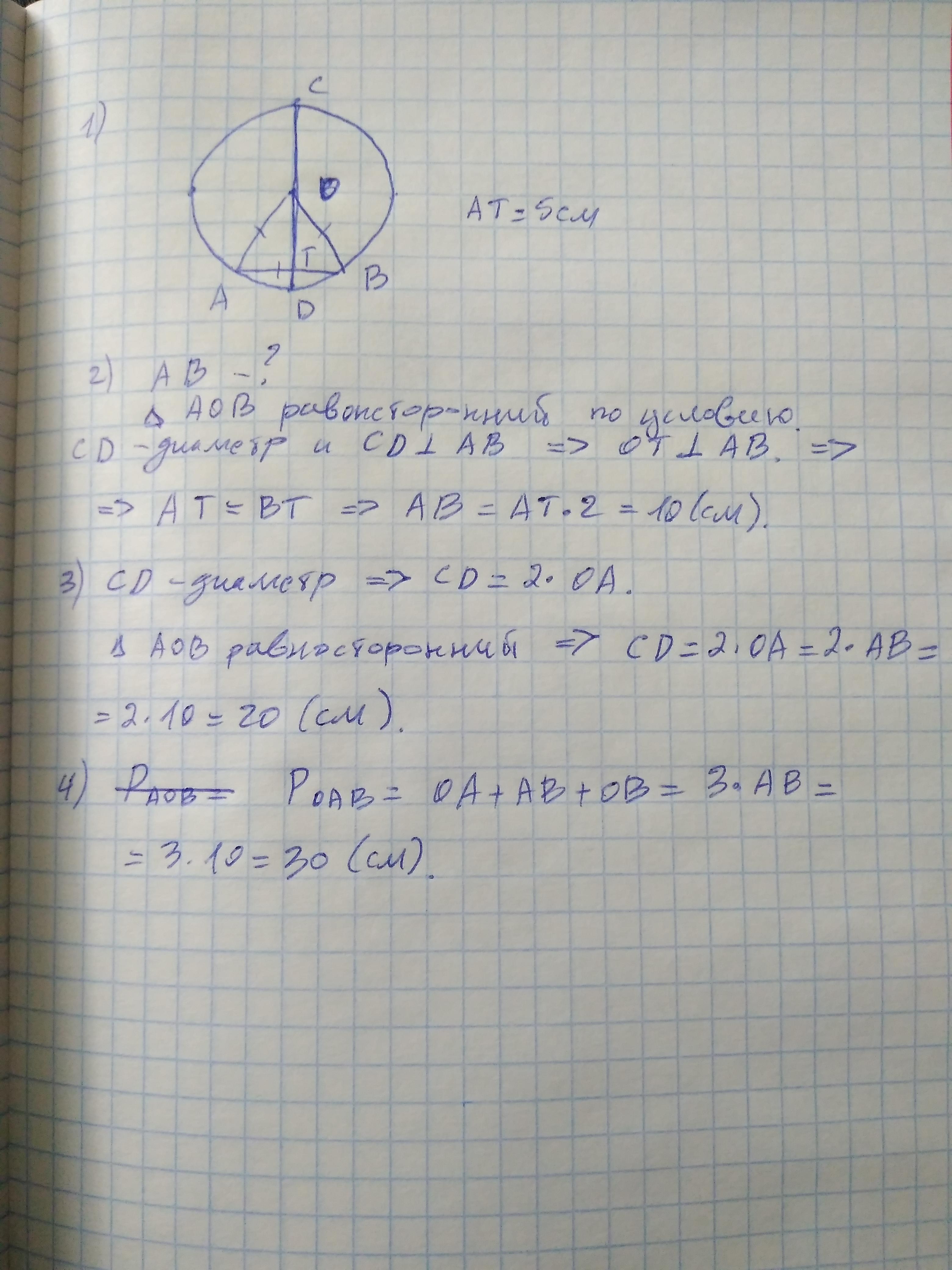 перпендикулярно проведен диметр СD. Диаметр СD и хорда АВ пересекаются в точке Т.