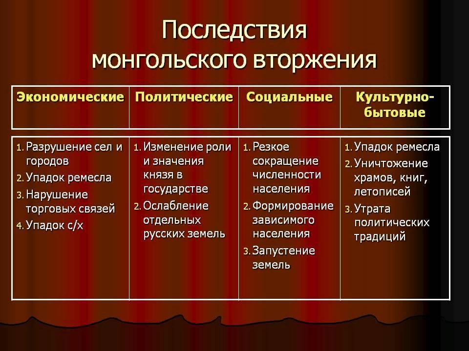 Запишите экономические, политические и культурные последствия монгольского нашествия Батыя на Русь.