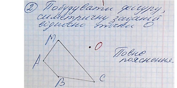 Побудувати фигуру симетричного заданий видно но точке О