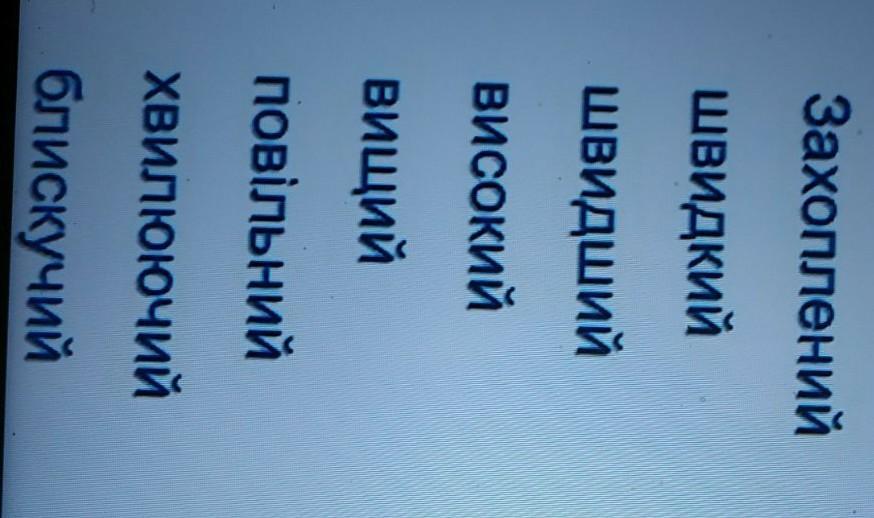 1. Захоплено (суфікс "ен"), 2.швидко (суфікс "к"), 3. швидше (суфікс "ш"), 4.високо (суфікс "ок"), 5.вище (суфікс "щ"), 6.повільно (суфікс "н"), 7.хвилююче (суфікс "юч"), 8.блискуче (суфікс "уч").