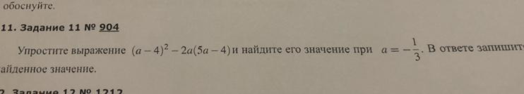 (a-4)^2 -2a(5a-4) = a^2-8a+16-10a^2+8a= -9a^2+16 если a=-1/3, то