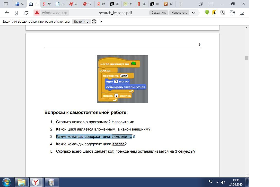 3. Команды "идти 5 шагов" и "если край, оттолкнуться"