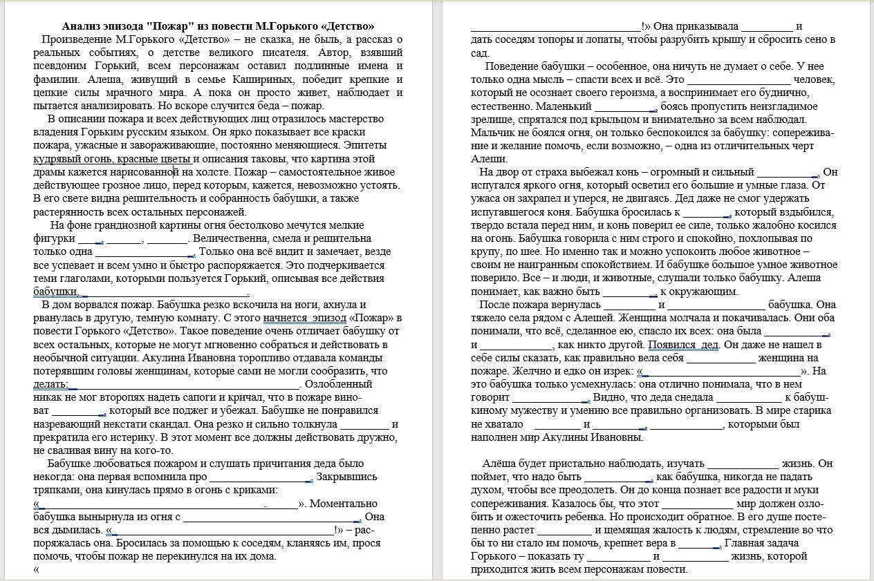 Анализ эпизода "Пожар" из повести М.Горького «Детство»