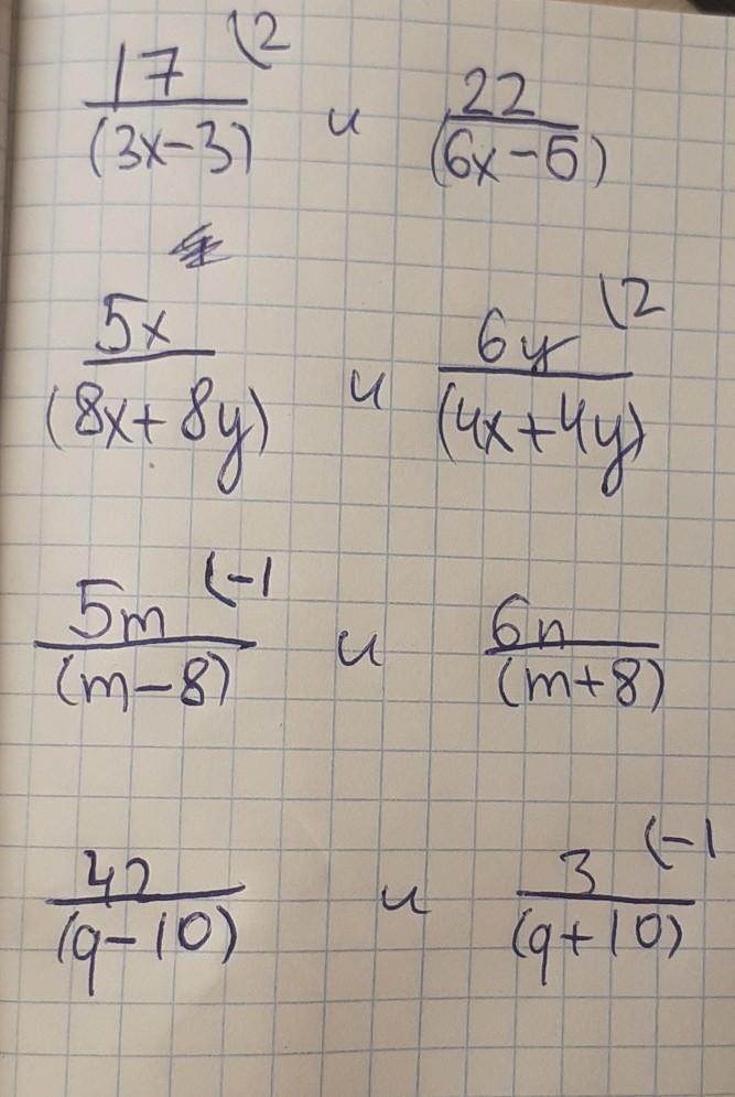 a)17/(3x-3) и 22/(6x-6) c)5m/(m-8 ) и 6n/(m+8)