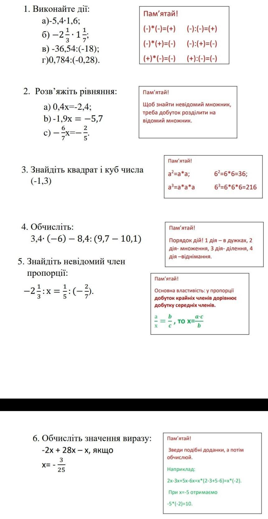 7 клас алгебра (підготовка до контрольної роботи) ​