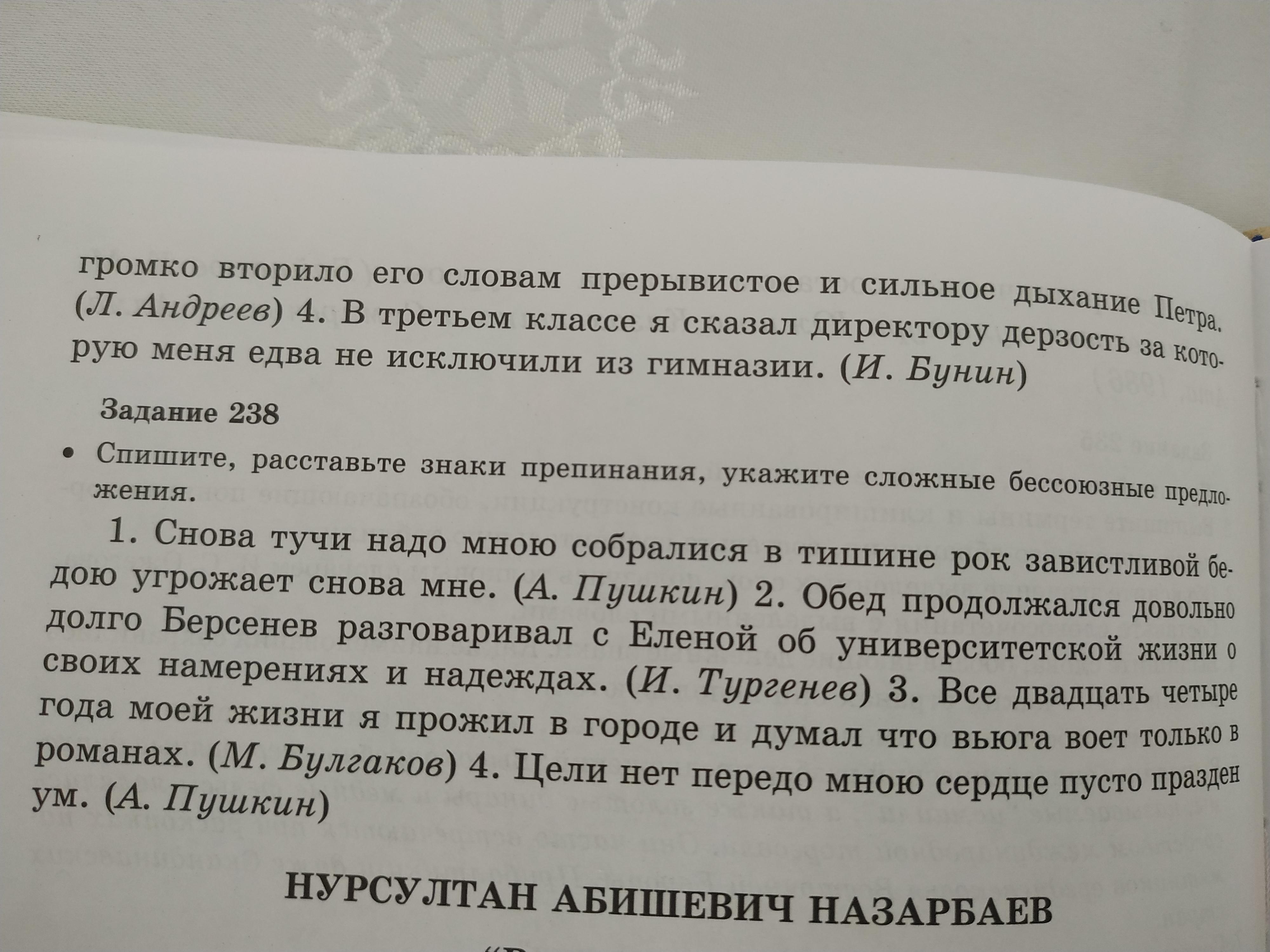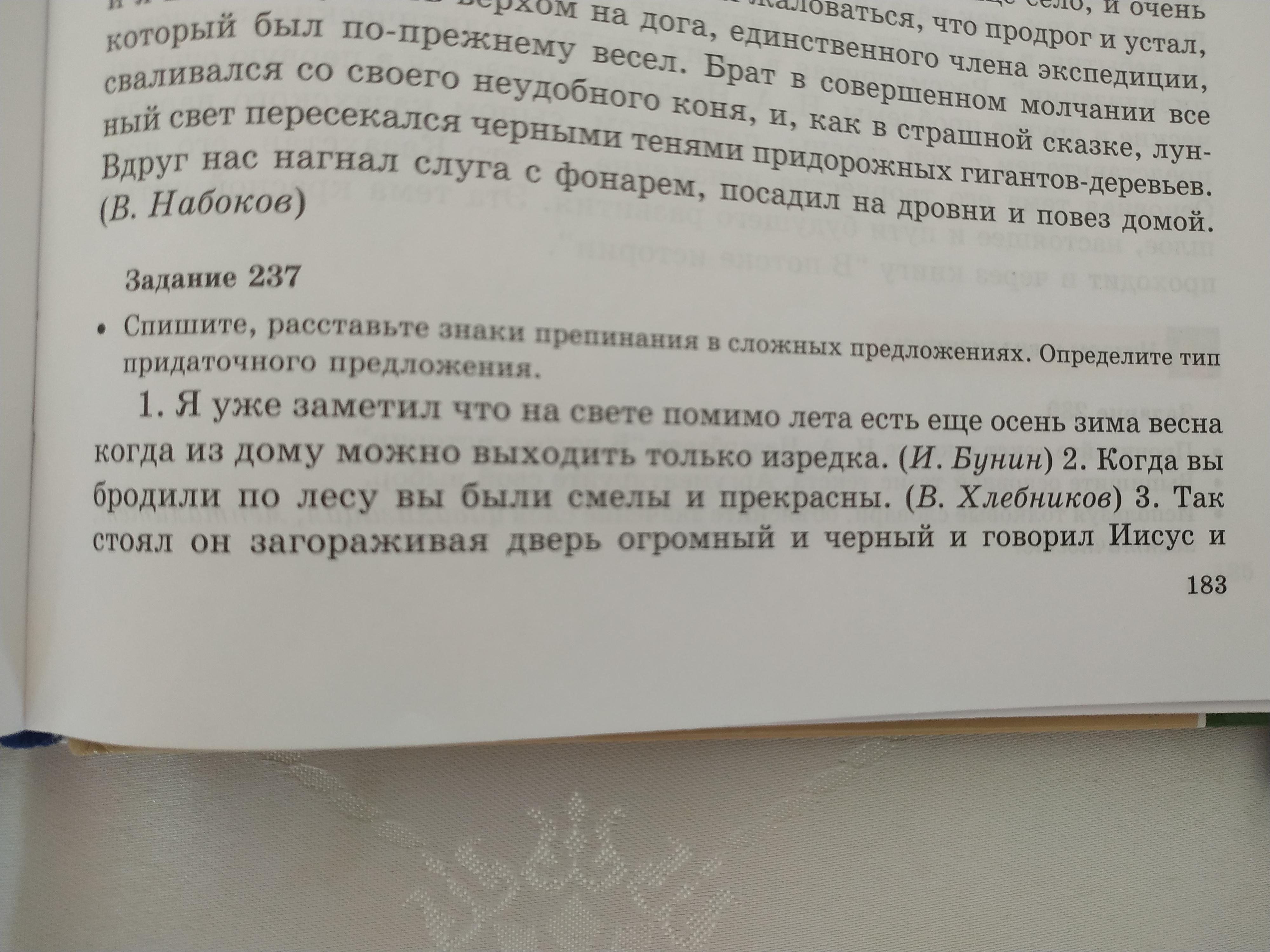 1.Я уже заметил, что на свете помимо лета есть ещё осень, зима, весна, когда из дому можно выходить только изредка. 2. Когда вы бродили по лесу, вы были смелы и прекрасны.3. Так стоял он, загораживая дверь, огромный и чёрный и говорил - "Иисус"- и громко вторило его словам прерывистое и сильное дыхание Петра. 4.В третьем классе я сказал директору дерзость, за которую меня едва не исключили из гимназии.