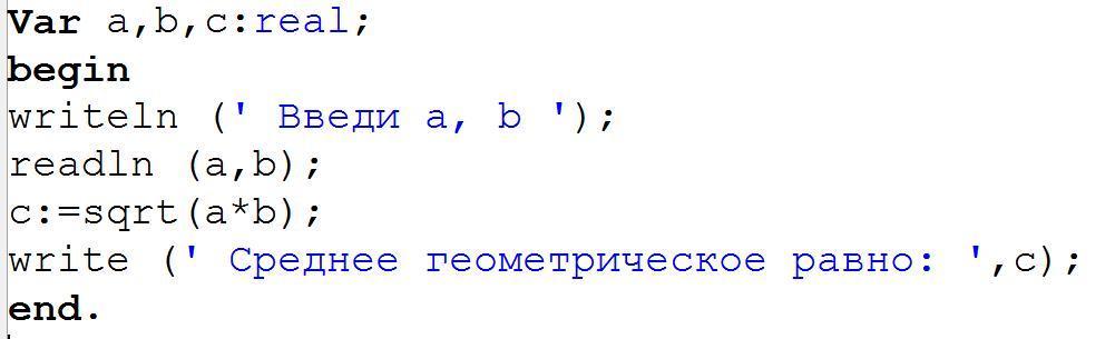 1) Даны два числа А и В, найти среднее арифмитическое и среднее геометрическое этих чисел.