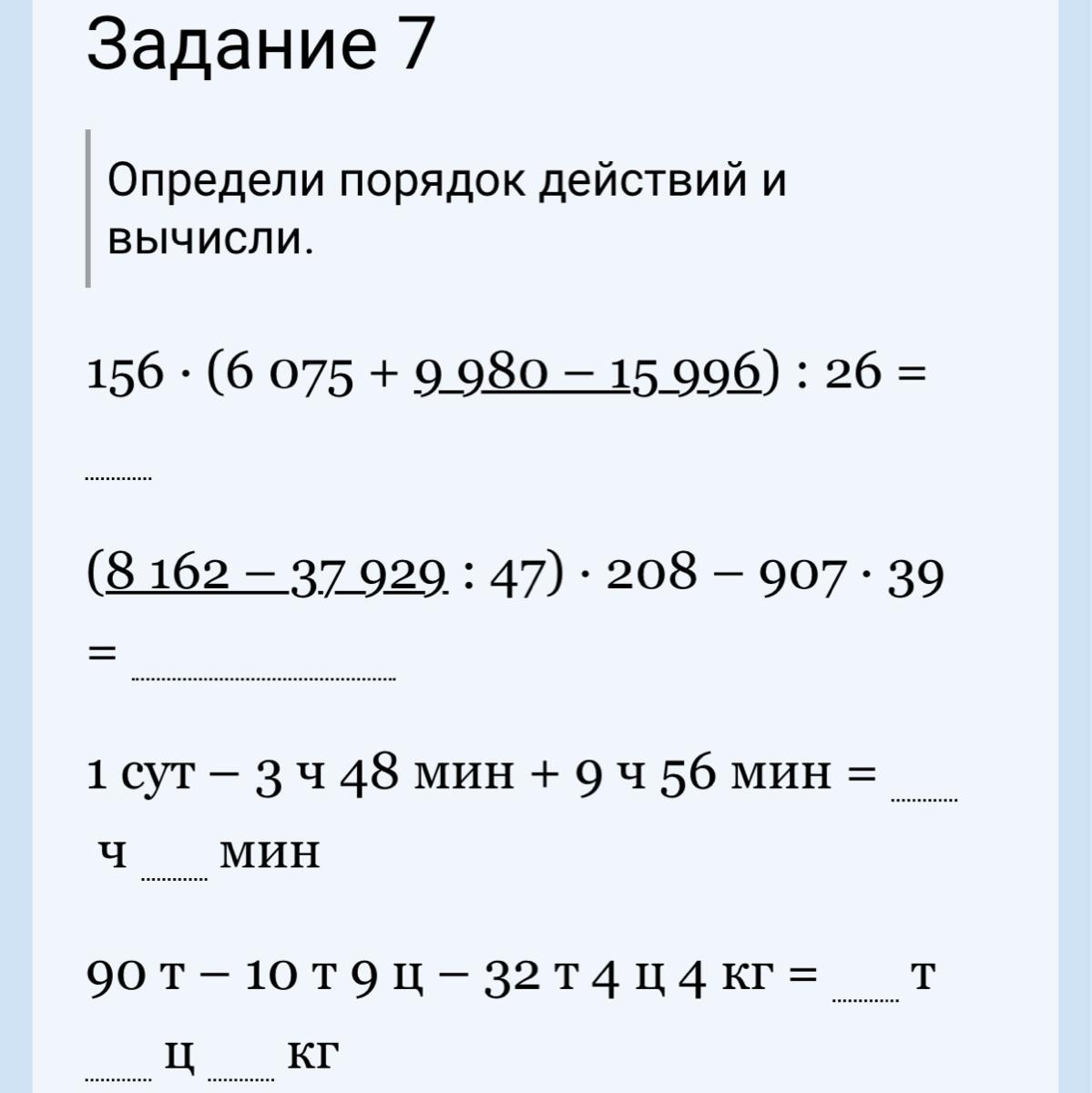 1) Первой деление в скобках, второе вычитание в скобках, третье умножение на 208, четвертое умножение 907 на 39, и пятое вычитание
