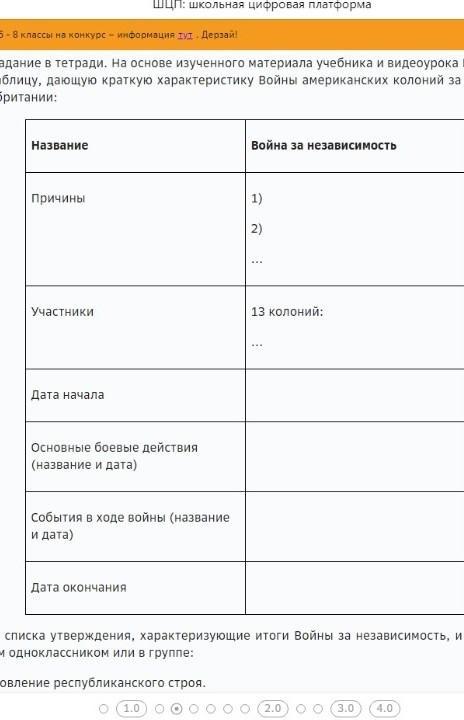 на основе изученного материала учебника заполните таблицу дающую краткую характеристику войны американских колоний за независимость от Великобритании